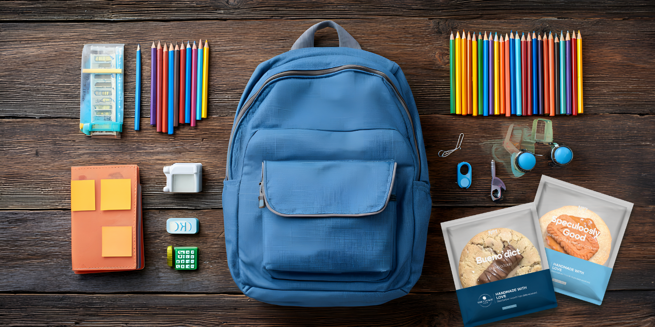 Jeder Cookie kommt in seiner eigenen bunten Verpackung – geschützt, frisch und perfekt für die Schultasche.